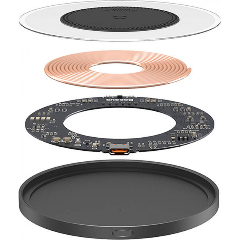 Wireless Qi inductive charger Baseus Simple 2, 15W with USB-C to USB-C cable (black)