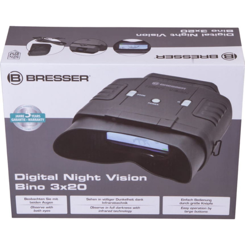 This digital night vision device has a large display and a tripod thread. This instrument is not prone to malfunction due to illumination overexposure since it is equipped with the newest digital technology and not the traditional analog version. Although intended for use during dusk or dawn, the integrated IR illumination allows the observer to see in total darkness. Because of the large view you have the opportunity to look with distance in the night vision device. The 3x magnification (6x with digital zoom) allows far objects to be seen with greater detail. The maximum observation distance is approximately 100m. Feautures: