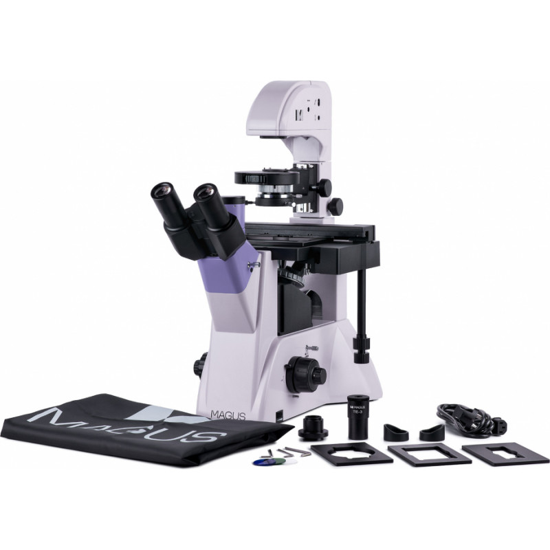 MAGUS Bio VD350 is a biological inverted microscope, which is used for studying stained and unstained samples in laboratory ware – Petri dishes, flasks, plates. The height of the dishes can be 55mm, and if you tilt the illuminator stand – up to 165mm. The bottom thickness of compatible ware is up to 1.2mm. The microscope, which utilizes the brightfield field and phase contrast microscopy techniques in the transmitted light, has a trinocular tube/side port camera for mounting a digital camera and monitor. It is used for routine laboratory and research work as well as teaching.