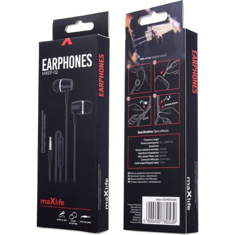 Jūsu iepirkumu grozs ir tukšs! Maxlife wired earphones MXEP-02 jack 3,5mm black