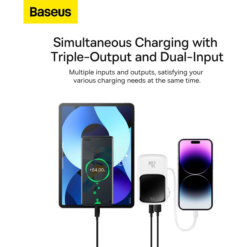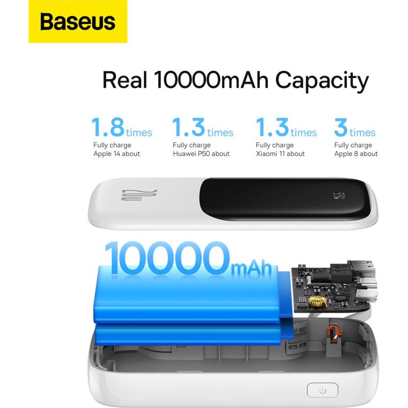Powerbank Baseus Qpow PRO with cable, USB-C, 2xUSB, 10000mAh, 20W (White)