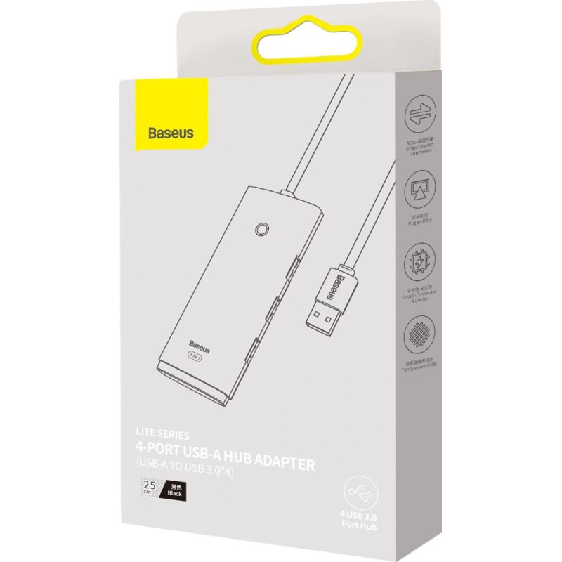 Baseus Lite Series Hub 4in1 USB to 4x USB 3.0, 25cm (Black)