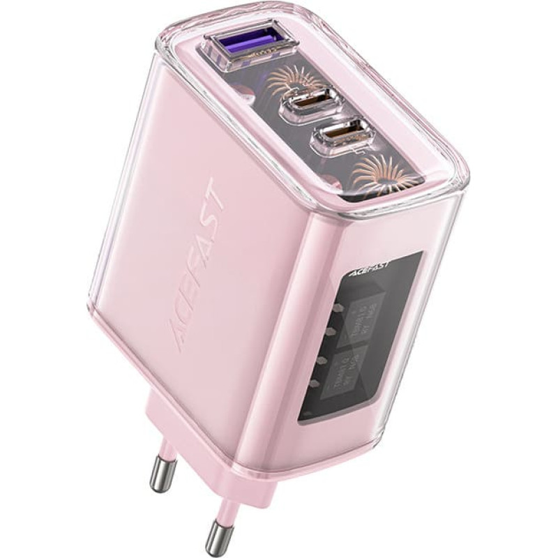 | GaN Acefast A45 charger up to 65 W with 3 ports: USB and 2 x USB C (purple) The Acefast A45 charger uses the third generation GaN technology - thanks to which it is more efficient, smaller in size and reaches a lower temperature. It intelligently controls the temperature during fast charging so that your device does not overheat. It also has many protections, such as overvoltage, overcharge and short circuit protection. However, not only its properties deserve attention - also the design. The transparent design exposes the internal chip, and at the same time impresses with crystal colors. The most important advantages of the GaN Acefast A45 charger up to 65 W with 3 ports: - It can charge three devices at the same time, such as a smartphone, headphones and a USB lamp . It has two USB C ports and one USB port