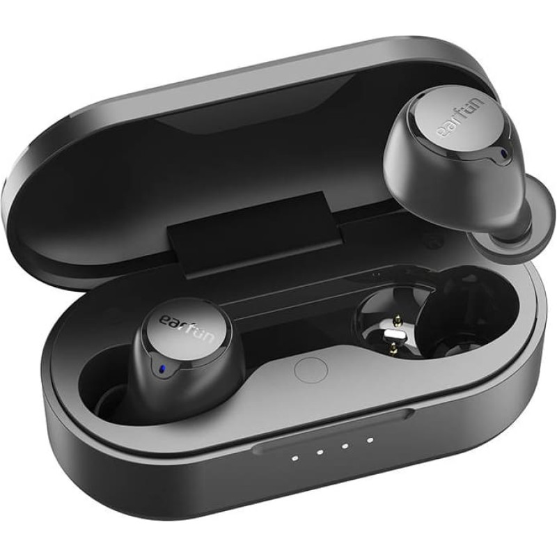 TWS EarFun Free 1S headphones (black)The EarFun Free 1S are wireless headphones that let you explore the unknown details of your favourite tracks. They are equipped with 7mm drivers that guarantee fantastic sound quality. Built-in microphones and ENC technology allow you to talk freely, no matter where you are. Their operating time reaches up to 30 hours. The headphones are easy to use with intuitive touchpads and the app gives you access to additional functions. The ergonomic design of the headphones provides you with unparalleled comfort, even during prolonged use. Immerse yourself in musicWith EarFun, you don't even have to leave your bed to feel like you're at a concert. The headphones feature dynamic 7-millimetre composite drivers that deliver high quality sound. So you can enjoy deep bass, rich detail and stunningly clear sound. Uninterrupted signal transmissionForget about connection problems! The headphones use the innovative Bluetooth 5.0 connection, which is responsible for a fast, stable and reliable connection. What's more, its range extends up to 15 m, which will increase your freedom of use. Convenient touch controlOperating the headphones is exceptionally simple and convenient - no more reaching for your smartphone every time! Free 1S features precision touchpads that you can use to adjust the volume, answer and reject calls, manage your music player and launch the intelligent voice assistant. Now all the most important functions are at your fingertips - just a few touches away! Up to 30 hours of music listeningListen to your favourite songs for as long as you like. The built-in rechargeable battery provides up to 6 hours of use. The included case will allow you to extend this time to up to 30 hours! The headphones also support fast charging, meaning you only need 10 minutes of charging to keep them running for another 2 hours. What's more, you can charge the case using both a USB-C cable and wirelessly. Made for talkingTalk on the phone wherever you want - now there's nothing standing in your way. Each handset has 2 built-in microphones that accurately capture your voice. They also use advanced noise-cancelling technology that filters out all unnecessary background noise. This means you can make phone calls with ease, even in a crowded train station or shopping mall - your caller will be sure to hear what you have to say. The comfort of your dreamsEnjoy maximum comfort. The headphones fit perfectly in your ears and do not cause discomfort or fatigue. Each headphone weighs just 4.4g, so you won't even feel them in your ears. They are also IPX7 waterproof, so drops of rain or sweat pose no threat to them. You'll find 3 pairs of interchangeable ear pads in different sizes, so you can tailor the headphones to your needs even better. More possibilities with the appGain access to additional headphone features with the EarFun Audio app. The free app is available for both Android and Apple users. With the app, you can change the EQ settings, check the battery charge status, and change the function of the touch panels. Included