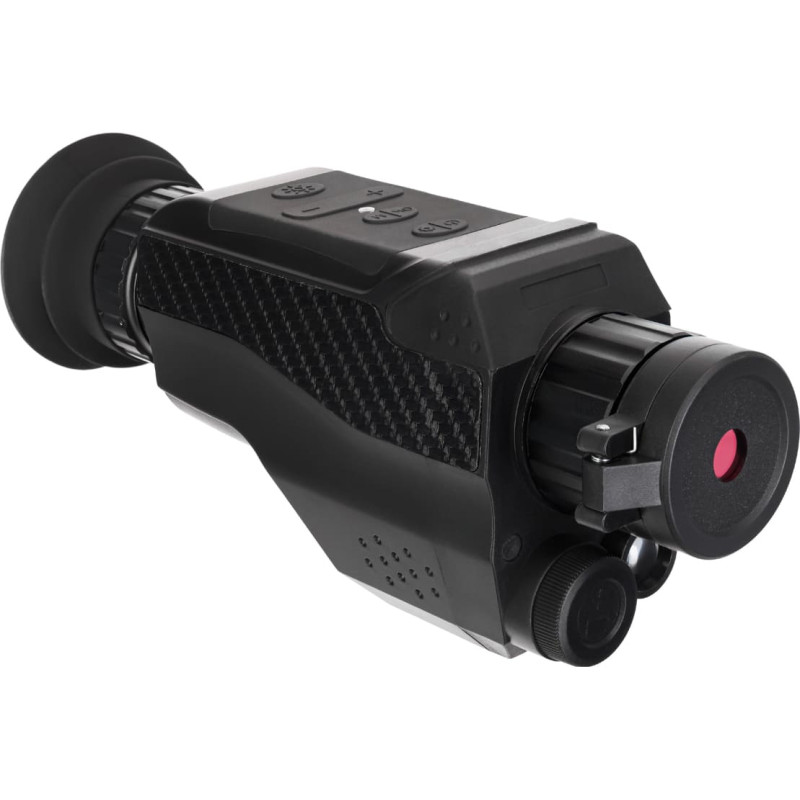 Levenhuk Atom Digital DNM100 Night Vision Monocular is your trusted device for observing distant objects at any time of the day. Regardless of the lighting conditions, the device produces a high-quality image at a magnification of 4x, which can be extra magnified by its digital zoom (1–8x). The monocular is great for hunting, orienteering, camping, and patrolling. A convex lens – for seeing more details One of the design advantages of the Levenhuk Atom Digital DNM100 model is a convex lens, which enlarges the image on the built-in display. In addition, the objective lens is larger than in the Levenhuk Atom Digital DNM50 monocular and the Levenhuk Atom Digital DNB100 binoculars: Its diameter is 35mm and, therefore, the optics can collect more light. The model is also equipped with bright IR illumination for nighttime observation. In combination, all of this helps the optoelectronic system to produce a bright, clear, and sharp image of the highest quality. A built-in recorder for taking photos and recording videos with sound During the day, the observation distance of the Levenhuk Atom Digital DNM100 monocular is unlimited, and, at night, you can explore the surroundings within 200m (650ft). For stationary observations or shoots, the instrument can be mounted on a tripod with a 1/4" mount. A built-in recorder allows you to save footage in photo and video format on a memory card of high capacity (up to 128GB). The USB port is located next to the card slot. The maximum photo resolution can reach 4096x2160 pix, and videos are recorded in Full HD. Rugged body and ergonomic design The lightweight body of the monocular is made of ABS plastic – a material that is known to be resistant to mechanical stress. The device fits comfortably in your hands and does not take up much space when being transported. The monocular is powered by a replaceable rechargeable battery, and the operation time on a single charge lasts up to 5 hours (with IR illumination off). The auto-off function of the display and the device significantly helps you to save battery power. Key features: