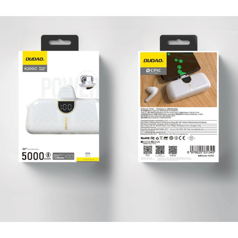 Jūsu iepirkumu grozs ir tukšs! Mini bag-shaped Dudao K20SC power bank USB-C 5000mAh - white