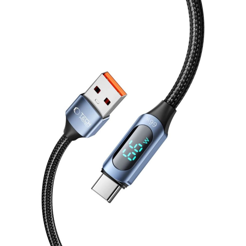 Tech-Protect UltraBoost Cable with LED Display USB-C | USB-A 66W 6A 2m - Blue
