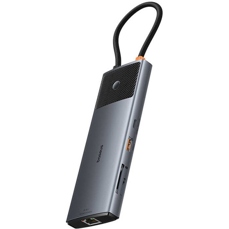 Adapter Hub 10in1 Baseus 2x HDMI, USB-C, 3xUSB-A+RJ45+SD/TF, PD (grey)The Baseus 10-in-1 Adapter Hub is a modern device that significantly enhances the functionality of your computer or laptop. Its elegant design, compact size, and matte aluminum housing make the hub both stylish and practical. With dimensions of 142 x 51 x 12mm and a weight of 120g, this device can easily fit into your bag or pocket, making it almost unnoticeable to carry. The adapter is highly compatible with various operating systems, such as Windows, Apple OS, Linux, and Vista, making it a versatile tool for many users. Clear Picture Quality with HDMIOne of the advantages of the Baseus 10-in-1 Adapter Hub is the presence of two HDMI ports, with one offering the ability to display 4K quality at 120Hz – an ideal solution for professionals working with graphics and for movie enthusiasts who expect the highest image quality. Fast Charging with USB-C PDThe USB-C port with Power Delivery (PD) allows for fast charging of devices with a maximum supported power of 100W, making the hub a practical solution not only for data transmission but also for powering devices. The charging power is 85W, ensuring speed and efficiency. Rapid Data TransferThe Baseus 10-in-1 Adapter Hub also offers USB-A and USB-C ports for data transfer at a rate of 10Gbps. This speed enables rapid transfer of large files, which is especially important for professionals working with multimedia. Stable Network ConnectionThe RJ45 connector is another important feature of the hub, supporting speeds of up to 1000Mbps. This ensures a stable and fast internet connection, whether you are working at home or in the office. Convenient Screen SharingThe hub is equipped with a built-in button that allows for quick termination of screen sharing. This feature enhances user convenience and enables rapid management of what is displayed on the screen.