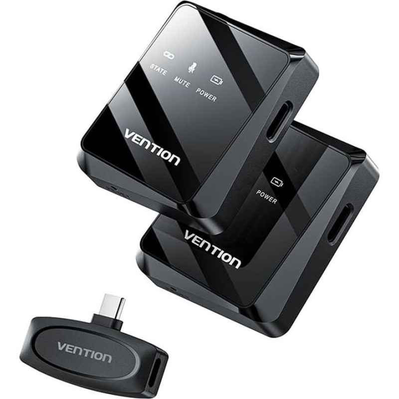 Vention NCBB0 USB-C wireless x2 microphone (black)Vention's set of two wireless microphones is the ideal solution for anyone looking for high sound quality, ease of use and reliability. With versatile compatibility, advanced audio monitoring features, low latency and long battery life, these microphones will meet the needs of even the most demanding users. Ideal for recording podcasts, vlogs, live streaming and long interviews. Invest in a professional tool that will support your creativity and allow you to create top-quality content!