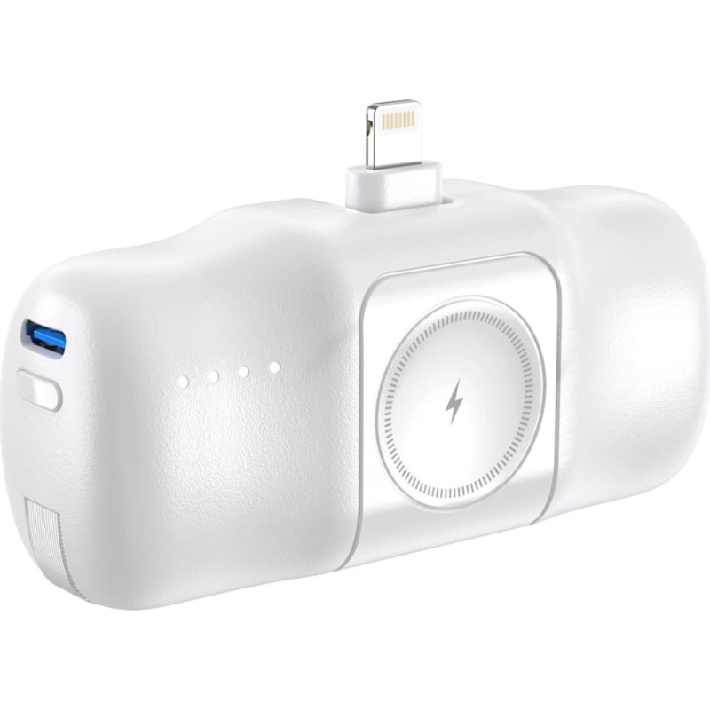 Wozinsky WF16-YLS 5000mAh 15W Lightning Mini Power Bank with Built-in USB-C Cable and Apple Watch Charger - White