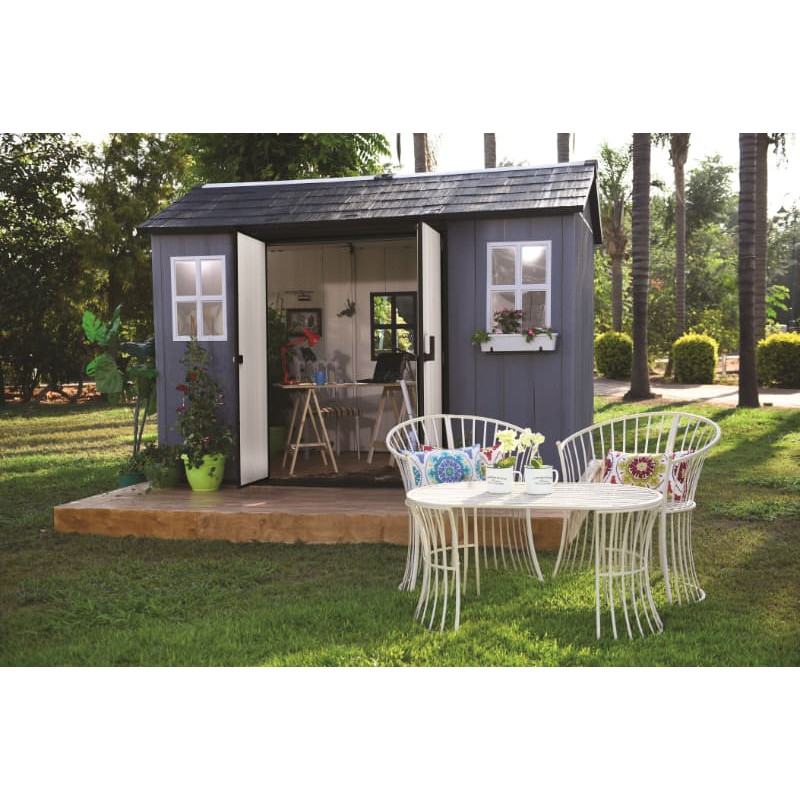 Praktisks šķūnītis Oakland 1175. Tajā var ietilpt ne tikai instrumenti un dārza piederumi, bet arī pļāvējs vai kāpnes. Tā dubultsienu paneļi ir izgatavoti no unikāla sveķu kompozītmateriāla, kas veido ļoti kvalitatīvu materiālu, kas ir izturīgs pret nelabvēlīgiem ārējiem faktoriem. Pamatīgs jumts un stiprināta tērauda konstrukcija garantē tās izturību daudzus gadus. Tās neapšaubāmā priekšrocība ir spēja krāsot šķūnīti jebkurā sev piemērotā krāsu paletē. Super izturīgs, izgatavots no sveķu kompozītmateriāla, un stingrs ar dubultu sienu struktūru un tērauda stiprinājumu. Novatoriskās DUOTECH ™ sienas, kas imitē koksni, piešķir krāšņumu. DUOTECH ™ sienas ir viegli krāsojamas, padarot to viegli pielāgojamu ainavai un dizainam. Īpaša apkope nav nepieciešama, pateicoties laika apstākļu izturīgai konstrukcijai. Aprīkots ar dubultdurvīm, jumta kore ar caurspīdīgu plastikātu dienas gaismai un Viktorijas stila diviem logiem. Šķūnītim ir pietiekami augsti griesti, lai pieaugušais varētu ērti pārvietoties. Viegla paneļu montāža. Piemērots smagāko priekšmetu (zāles pļāvēju) uzglabāšanai grīdas izturības dēļ.
