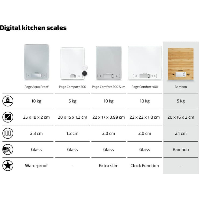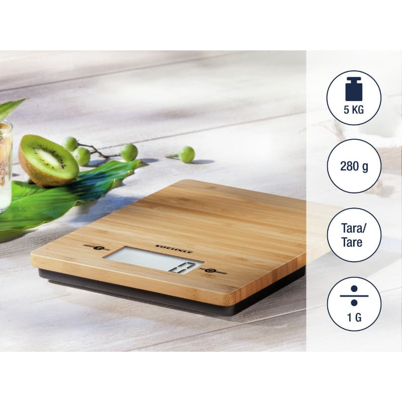 Digitāli virtuves svari ar higiēnisku dabīga bambusa svēršanas platformu, kas ir viegli kopjama. Skārienjūtīgi taustiņi - viegls pieskāriens taustiņam ir pietiekams. Liels, viegli nolasāms LCD ekrāns. Ērta svara pievienojošā funkcija (TARE). Izslēdzas automātiski. Mērvienību izvēle (g, kg un oz,lb)., gradācija 1g. Iepakojumā esošais maisiņš var radīt nosmakšanas draudus. Turēt bērniem un zīdaiņiem nepieejamā vietā. Baterijas iekļautas. 5 gadu garantija. *Preces krāsa var atšķirties no attēlā redzamās. Produkta apraksts ir vispārīgs, tajā ne vienmēr ir minētas visas produkta īpašības. |