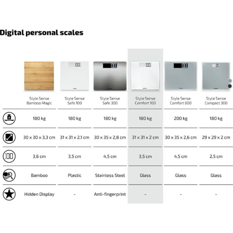 Jūsu iepirkumu grozs ir tukšs! Soehnle Elektroniskie svari Style Sense Comfort 100
