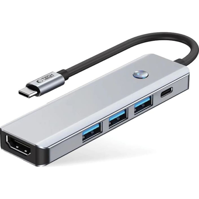 Tech-Protect HB01 HUB Adapter 5in1 USB-C + USB3.0 + HDMI 4K 60Hz + PD100W - gray