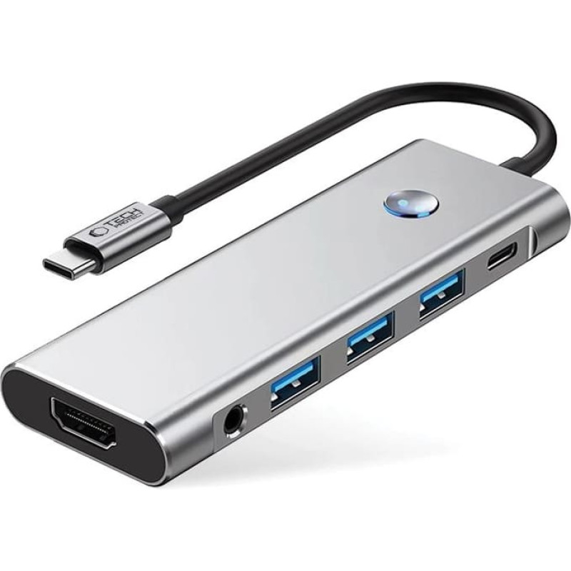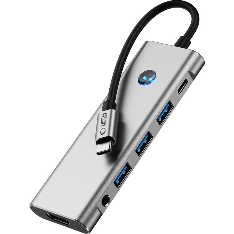 Tech-Protect HB04 HUB Adapter 9in1 USB-C + USB2.0 + USB3.0 + HDMI 4K 60Hz + SD | TF + PD100W + AV3.5 - gray