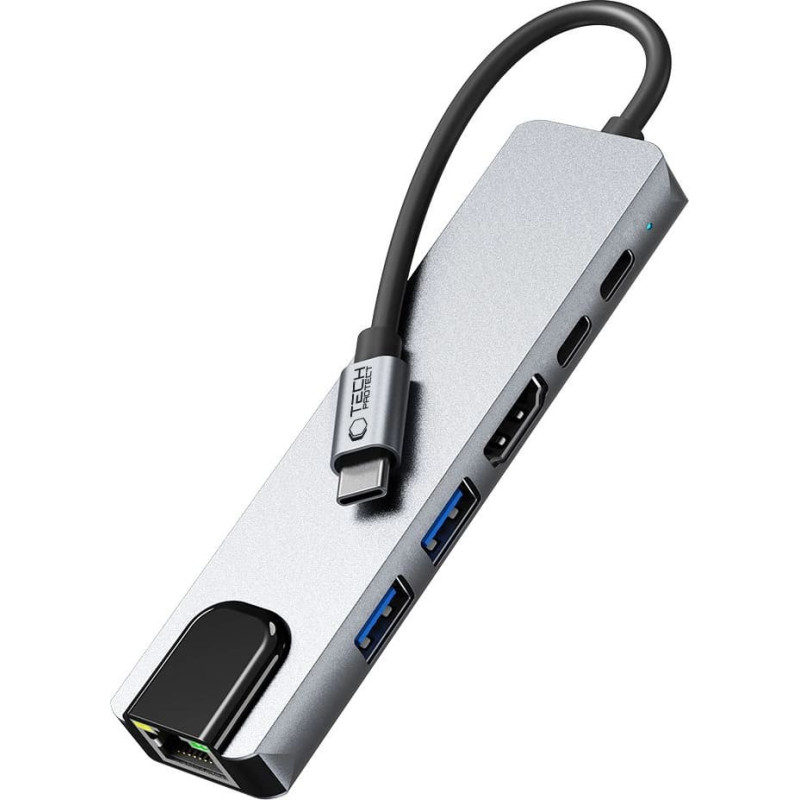 Tech-Protect HB02 HUB Adapter 6in1 USB-C + USB2.0 + USB3.0 + HDMI 4K 30Hz + RJ45 + PD100W - gray