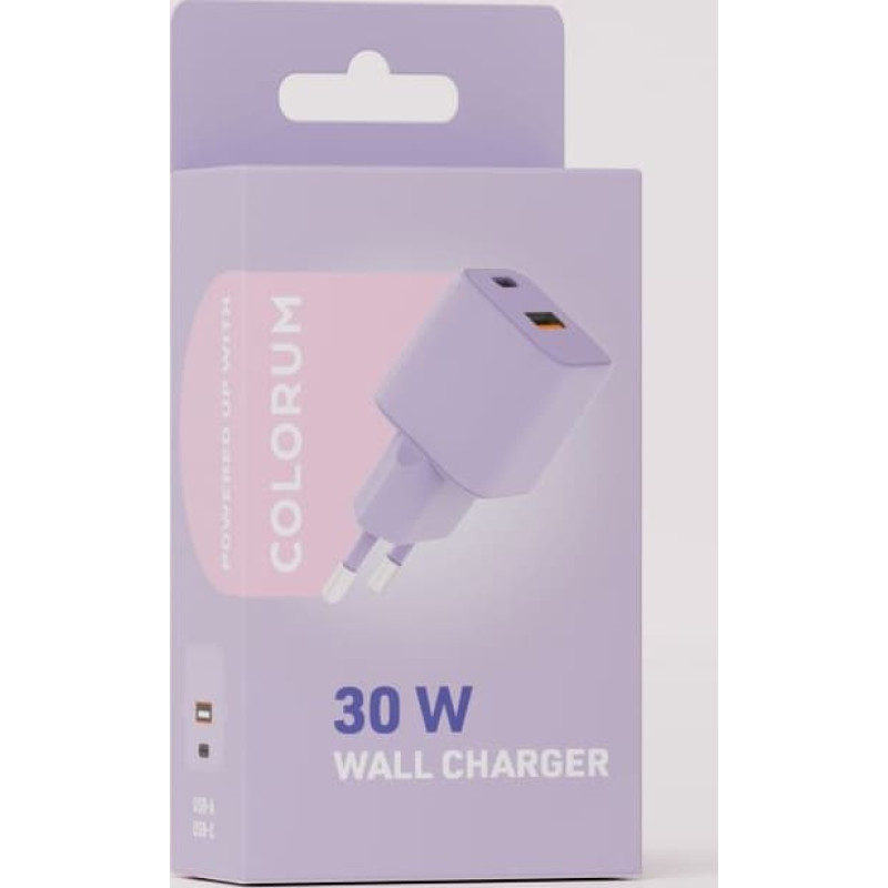 Jūsu iepirkumu grozs ir tukšs! Colorum wall charger USB-A + USB-C PD 30W CLS30-AC-09 xLavenda