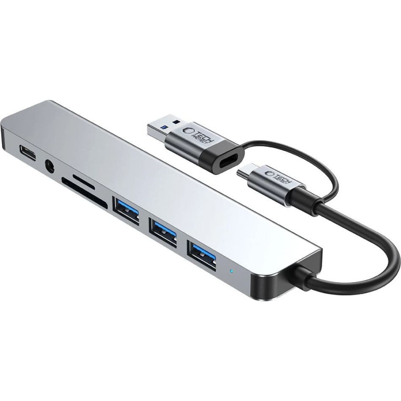Tech-Protect HB06 HUB Adapter 8in1 TYPE-C + USB2.0 + USB3.0 + SD|TF + AV3.5 - gray