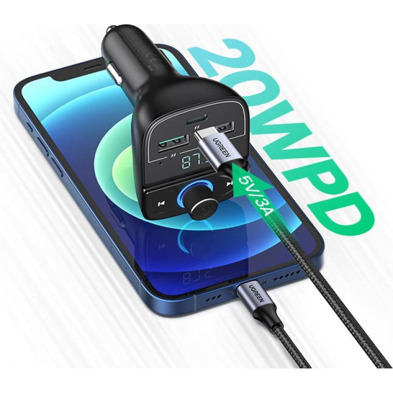 Ugreen FM Transmitter Bluetooth 5.0 car charger MP3 3x USB TF micro SD 4,8 A black (CD229)
