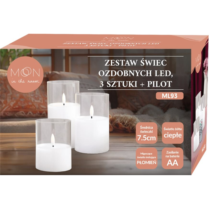 Jūsu iepirkumu grozs ir tukšs! Moon In The Room Decorational LED Candle set 3 pcs. white glass + remote