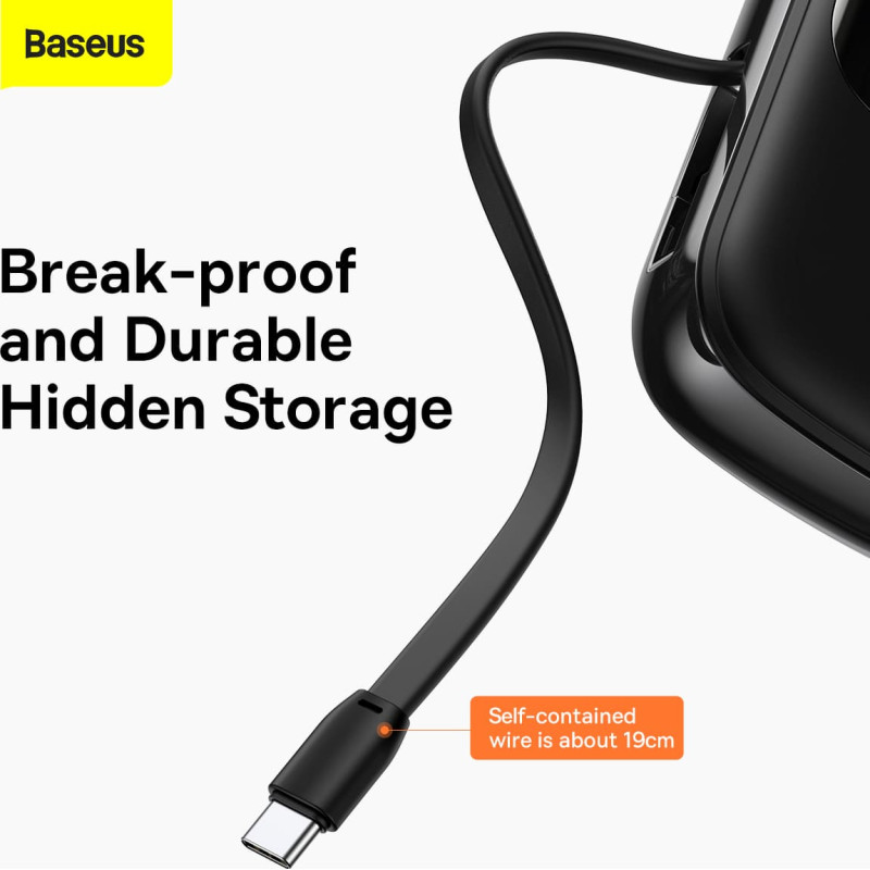 Baseus Qpow PRO powerbank with USB-C cable, USB-C, USB, 20000mAh, 22.5W (black)Opt for a capacious powerbank from Baseus and charge your devices quickly and safely. The Baseus Qpow Pro has a built-in USB-C cable and 2 output ports. It also supports multiple fast charging protocols. It allows you to renew the power of 3 devices simultaneously. Its output power reaches 22.5 watts and its capacity is 20,000 mAh. Thanks to the fact that it is handy and lightweight, it is not a problem during transportation. It also stands out for its wide compatibility and multi-level protection.