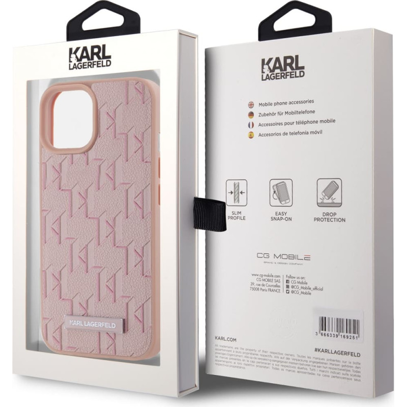 Jūsu iepirkumu grozs ir tukšs! Karl Lagerfeld PU Leather Monogram Metal Logo MagSafe Case for iPhone 15 Pink