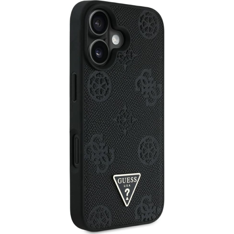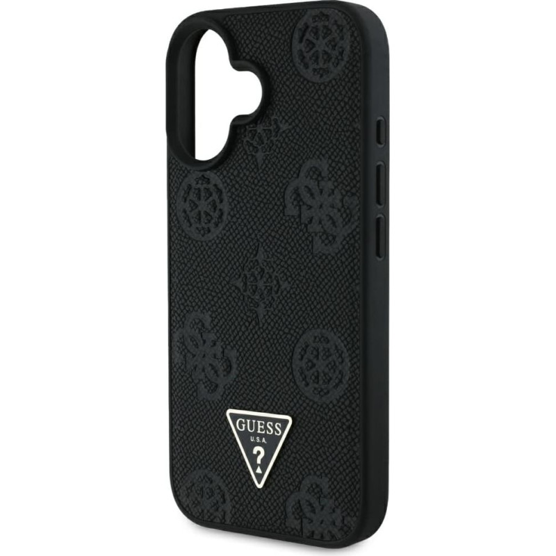 Case Guess Grained Hot Stamp Peony Triangle Logo MagSafe for iPhone 16 black