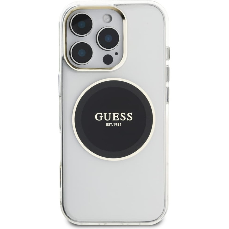 Case Guess IML Metal Colored Circle Classic Logo MagSafe for iPhone 16 Pro black