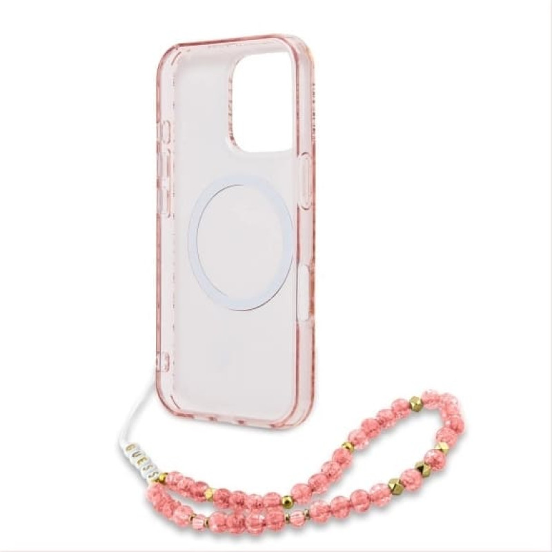 Guess GUHMP16XHCPOFPP iPhone 16 Pro Max 6.9" różowy|pink hardcase IML Flowers Allover Electro With Pearl Strap MagSafe
