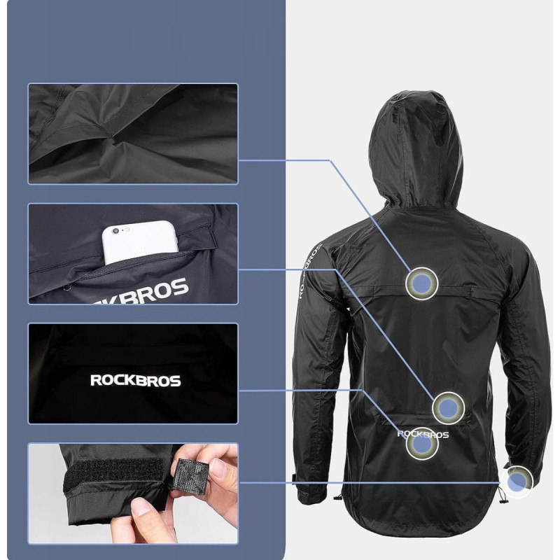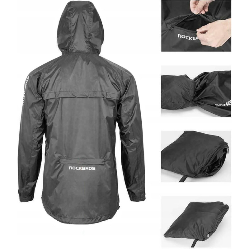 The most important advantages of the Rockbros YPY013BKXL rain jacket: - Effectively protects against rain . Waterproof lamination and tight zippers prevent water from entering. The jacket is made of waterproof nylon and has sealed seams.