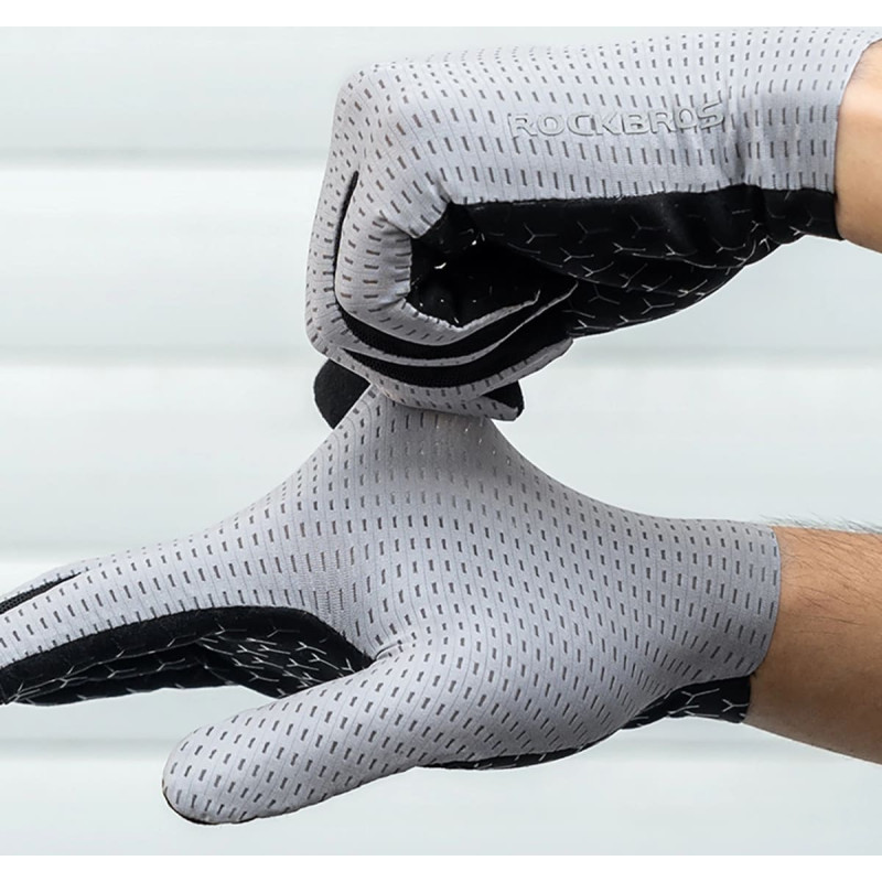 Rockbros Breathable Full Finger Cycling Gloves, Size: XL â Green Rockbros cycling gloves in the full and breathable version are the perfect choice for warm days for cyclists who value comfort, grip and functionality. Made of lightweight, flexible materials, they fit perfectly to the hand, without restricting movement while riding. Breathable mesh panels and ventilation holes provide pleasant airflow, and silicone anti-slip zones in the palm improve grip. An additional advantage are conductive fibers in two fingers, which allow comfortable use of touch screens without taking off the gloves. The gloves are also equipped with a reflective logo , increasing visibility after dark. The whole thing weighs only about 23 g (size M), which makes them an extremely light and practical addition to everyday training and city commutes. Choose Rockbros and feel the difference - breathability, safety and comfort in one! ~ Specification: