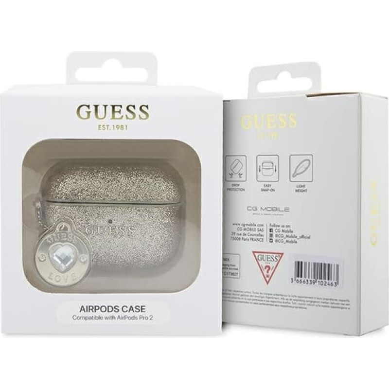 Guess GUAP2PGEHCDD AirPods Pro 2 (2022|2023) cover złoty|gold Fixed Glitter Heart Diamond Charm