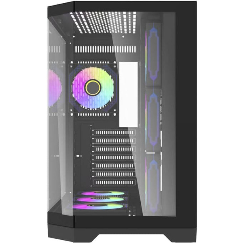 Darflash FT418 PRO computer case + 7 aRGB fans (black)Darkflash FT418 PRO is a compact computer case designed for users who appreciate both aesthetics and functionality. It is equipped with three transparent tempered glass panels and seven ARGB fans, so it perfectly combines cooling performance with a modern gaming design. It's also compatible with a wide range of popular components, so you can build a computer perfectly suited to your needs.
