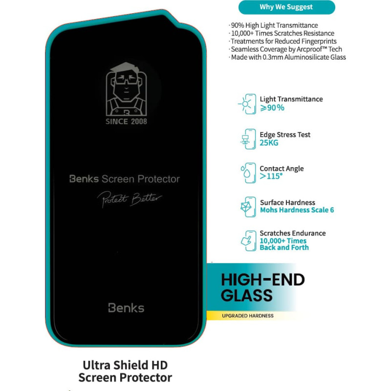Jūsu iepirkumu grozs ir tukšs! Benks Tempered glass Ultra Shield HD for Iphone 14 Pro Max|15 Plus|16 Plus black