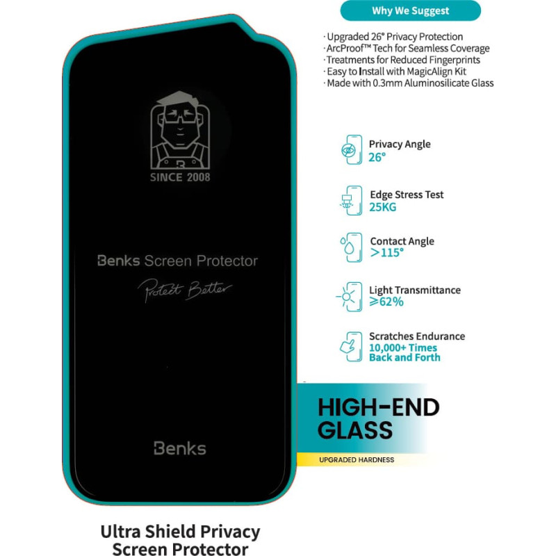 Jūsu iepirkumu grozs ir tukšs! Benks Tempered glass Ultra Shield Privacy for Iphone 16 Pro black