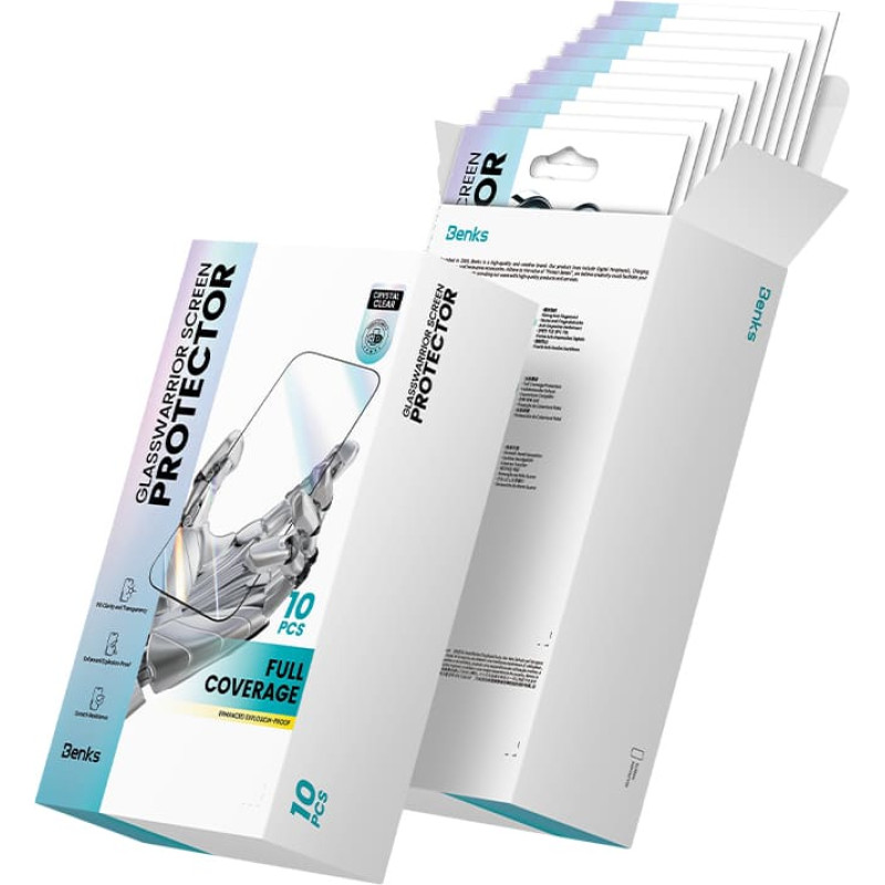 Jūsu iepirkumu grozs ir tukšs! Benks Tempered glass Glass Warrior HD for Iphone 14 Pro Max|15 Plus|16 Plus black - 10 pieces