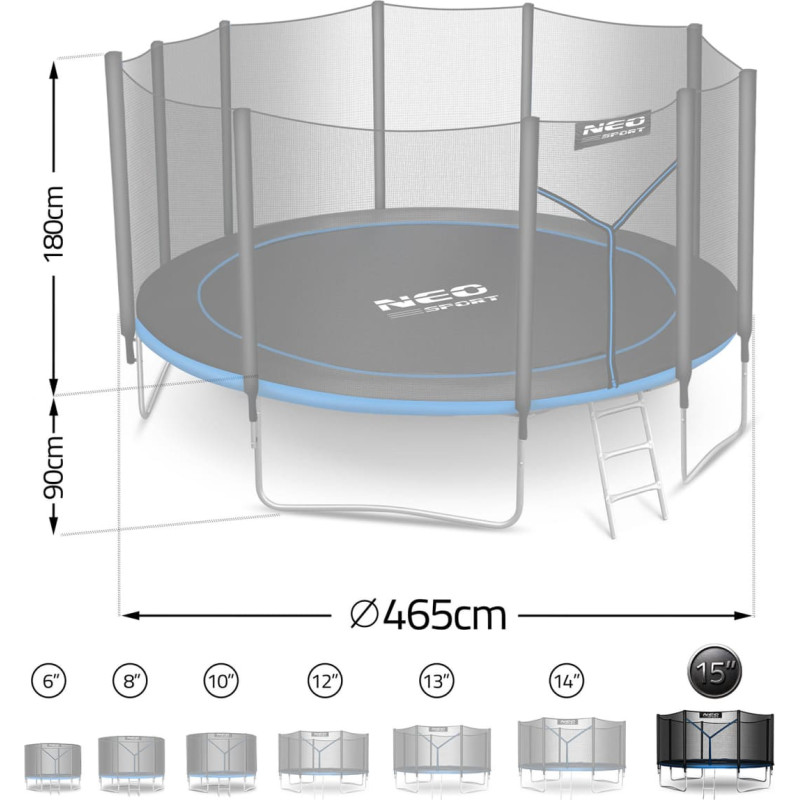 Jūsu iepirkumu grozs ir tukšs! Neo-Sport Dārza batuts 15 pēdas/465 cm ar āra tīklu un kāpnēm