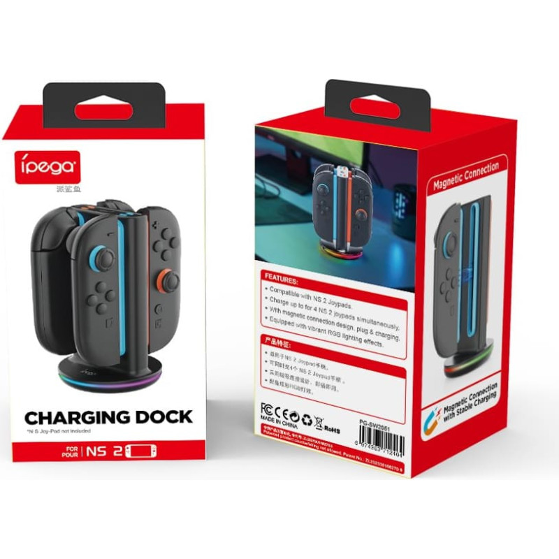 Jūsu iepirkumu grozs ir tukšs! iPega SW2051 Charger Dock with RGB for JoyCon Controllers Nintendo Switch 2 Black