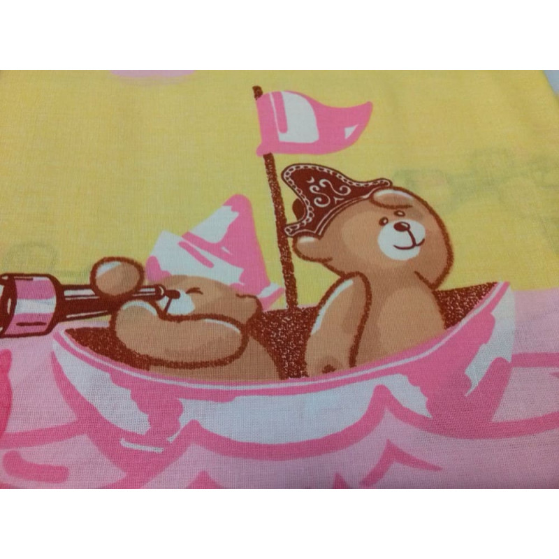 Jūsu iepirkumu grozs ir tukšs! Kokvilnas gultasveļa 90x120 Lācīši Pirāti uz laivas dzeltenrozā fona
