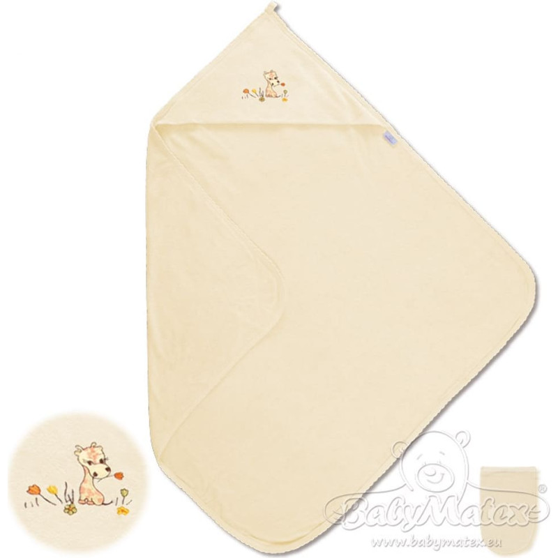 Jūsu iepirkumu grozs ir tukšs! Bērnu vannas dvielis 85x85 Frotē krēms 2 ar dekoratīvu aplikāciju