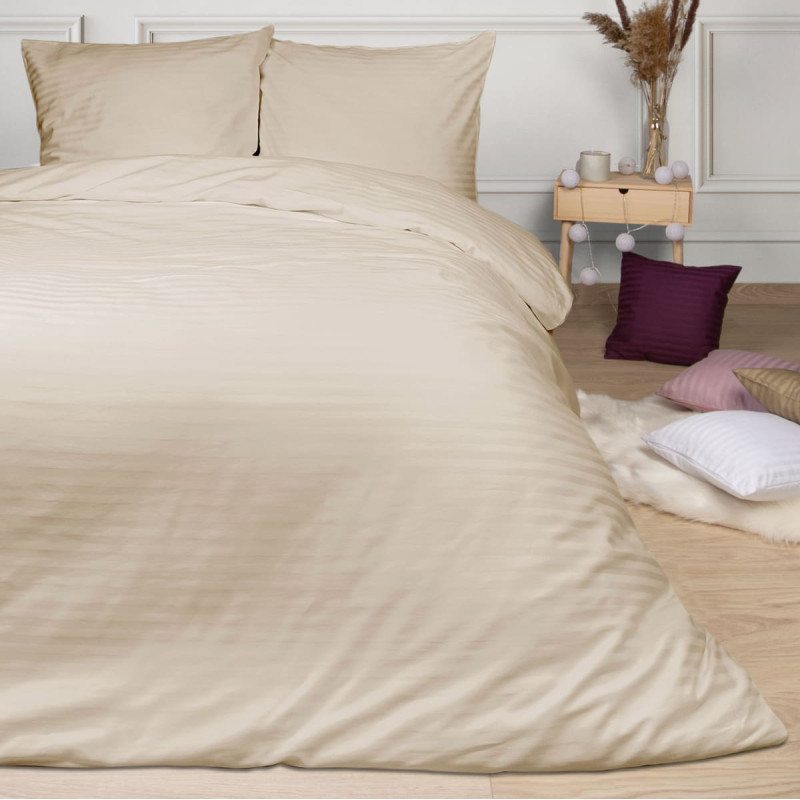 Jūsu iepirkumu grozs ir tukšs! Satīna gultas veļa 180x200 kapučīno bēša vienkrāsainas svītras Cizgili damask