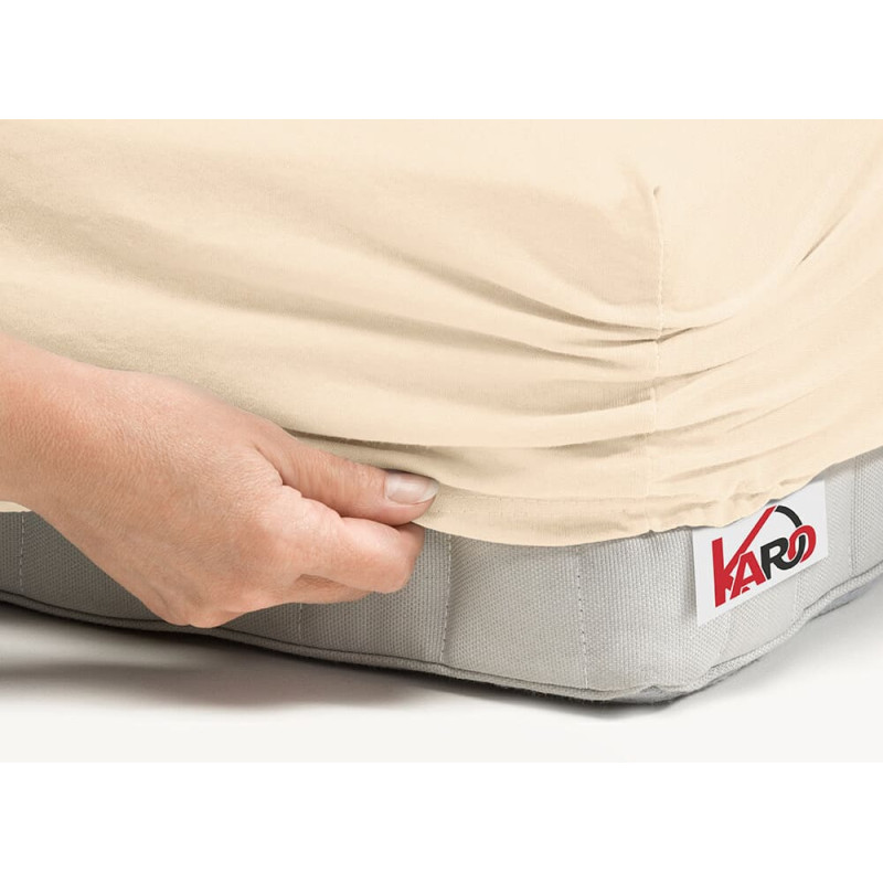 Jūsu iepirkumu grozs ir tukšs! Džersijai pieguļošs palags 160x220 gaiši bēšs 008 biezs 150g/m2