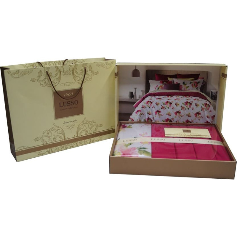 Jūsu iepirkumu grozs ir tukšs! Satīna gultas veļa 160x200 Lusso D34 Spilvendrānas 2x70/80 2x50/60 Pieguļošs palags 220x240 Fuksijas balti krāsoti ziedi
