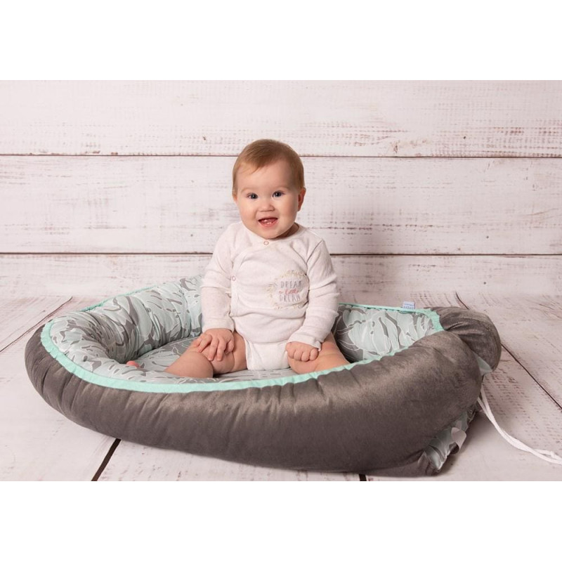Jūsu iepirkumu grozs ir tukšs! Bērnu ligzda Mīksts kokons 55x80 pārvalks tumši pūdera rozā piparmētru divpusējs TMPGS-01