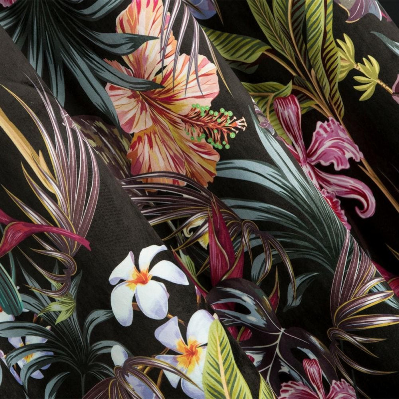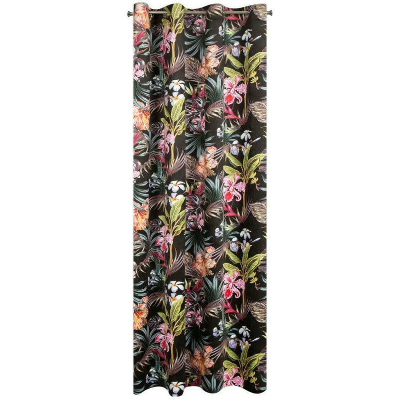 Jūsu iepirkumu grozs ir tukšs! Gatavs aizkars ar starplikām 135x250 sāmu ziedi tropu lapas grafīts rozā velūrs