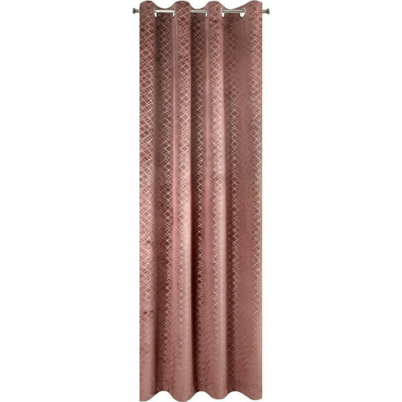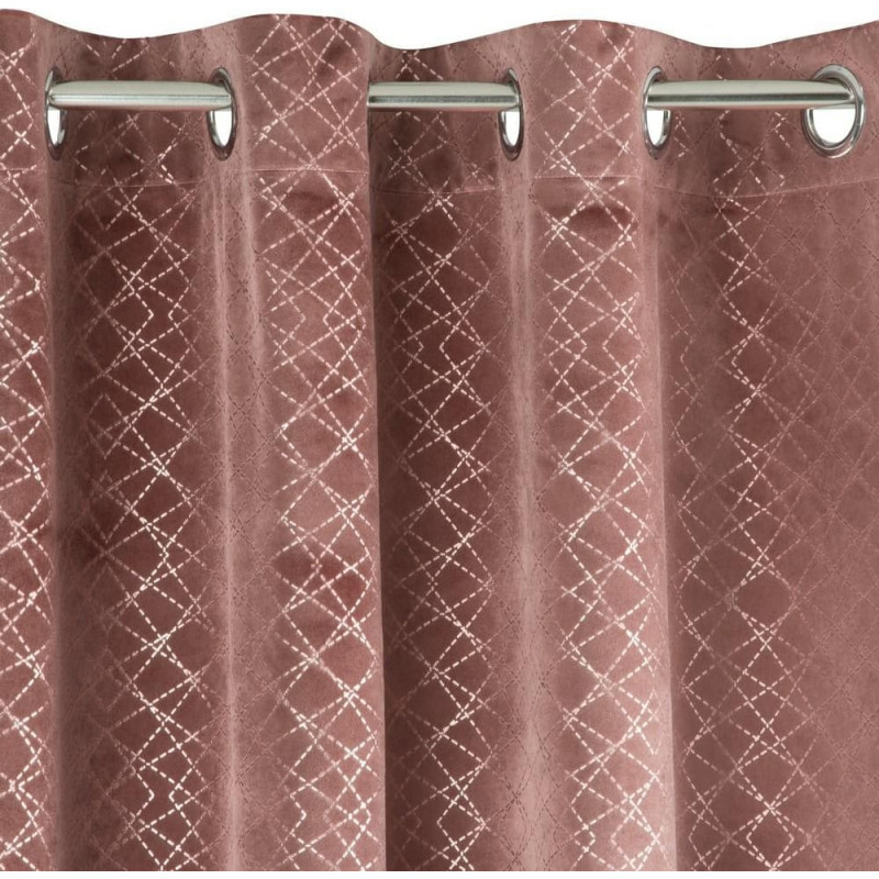 Jūsu iepirkumu grozs ir tukšs! Gatavs aizkars ar starplikām 140x250 Chiara rozā tumšas ģeometrijas sudraba velūrs