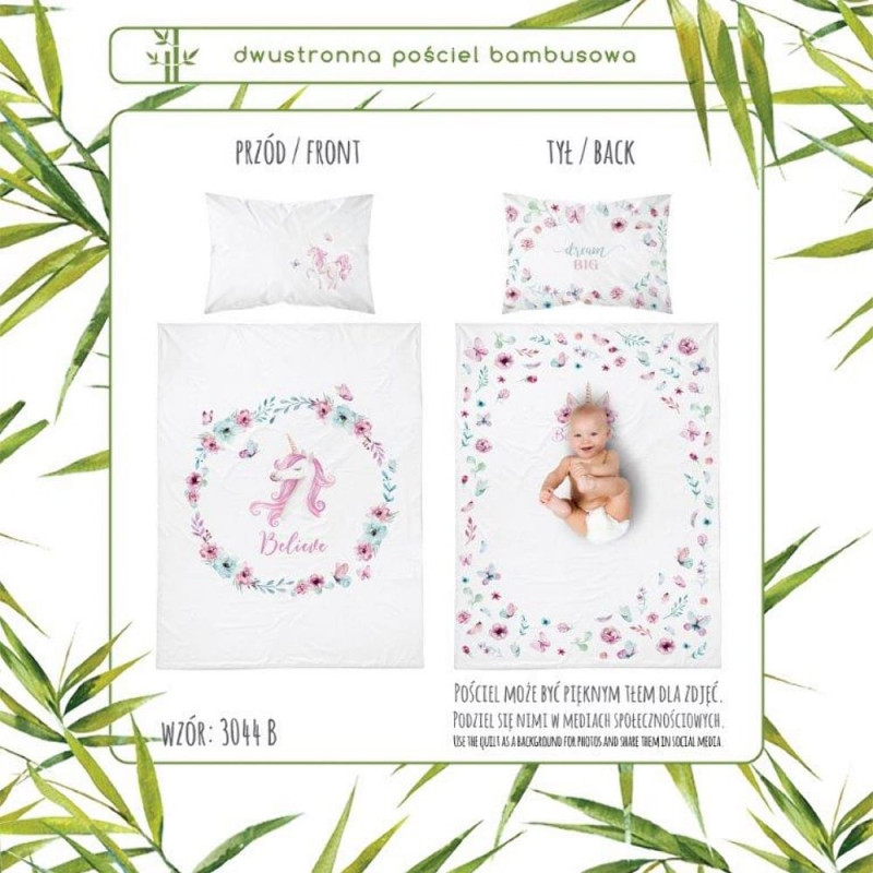 Jūsu iepirkumu grozs ir tukšs! Bambusa gultas veļa 90x120 Unicorn ponijs balts rozā piparmētras gultiņai 3044 B