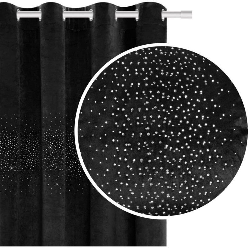 Jūsu iepirkumu grozs ir tukšs! Gatavs aizkars ar starplikām 140x250 melns velūrs ar spīdīgiem kristāliem