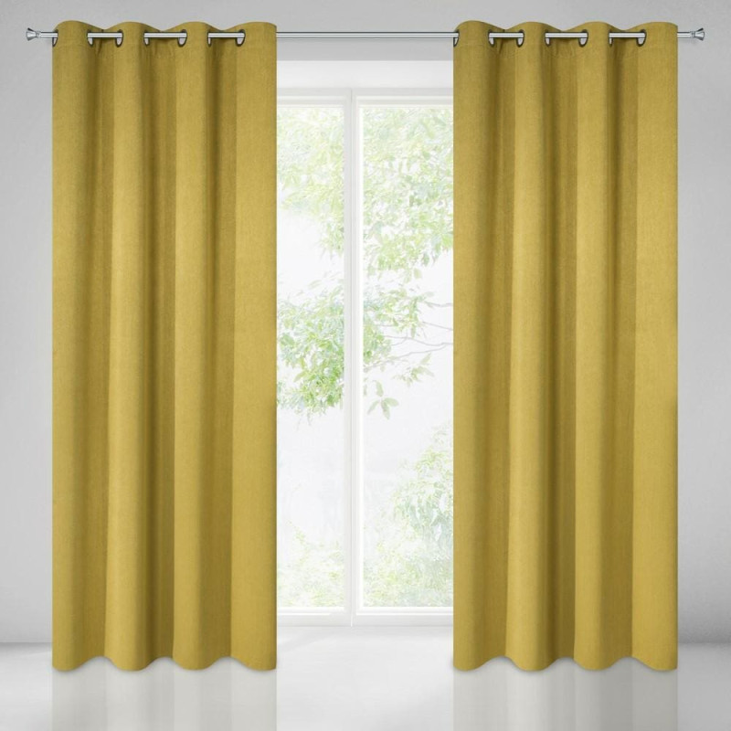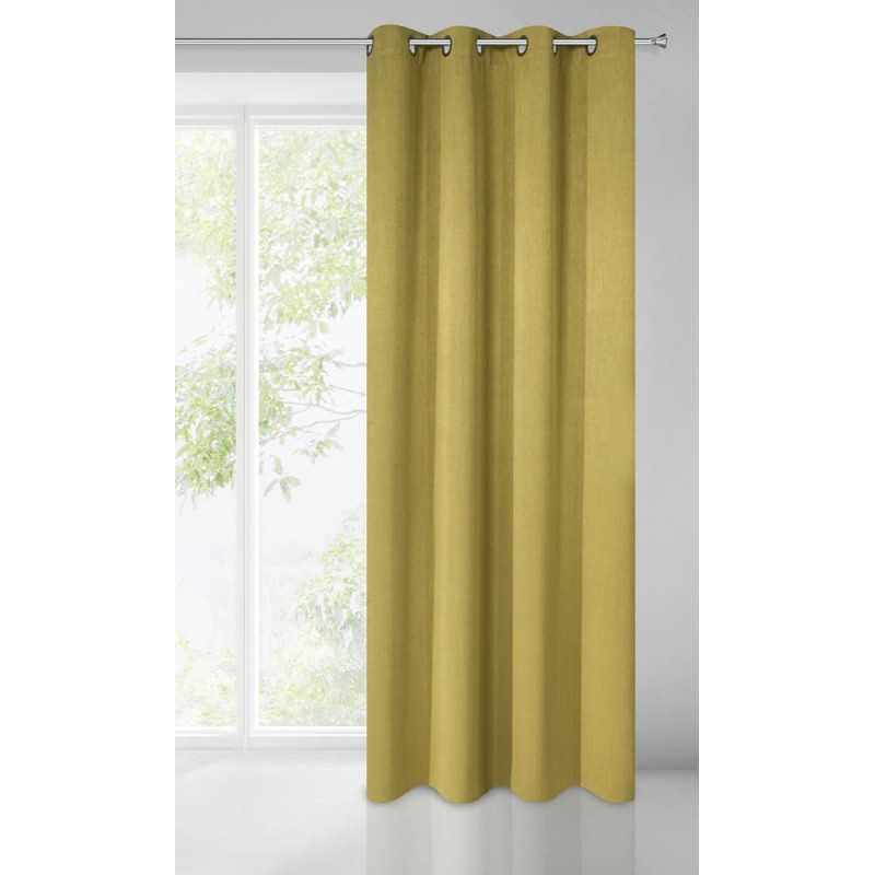 Jūsu iepirkumu grozs ir tukšs! Gatavs aizkars ar blīvgredzeniem 135x250 sinepēm, izgatavots no biezāka Rossie auduma
