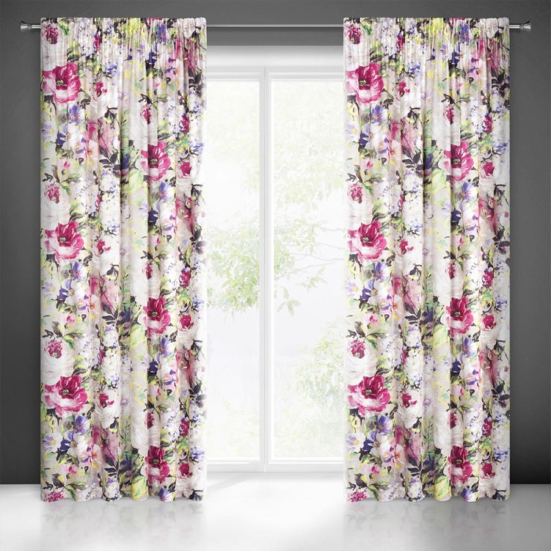 Jūsu iepirkumu grozs ir tukšs! Aizkars 140x270 Amelie bēšs amaranta ziedu velūrs gatavs uz lentes